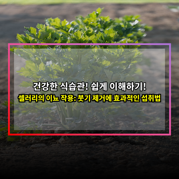 • 혈액순환 개선: 셀러리는 혈액순환을 개선하는 효능이 있어 혈액 순환을 원활하게 하여 붓기를 완화하는 데 도움을 줍니다.