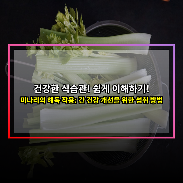 미나리를 꾸준히 섭취하면 건강한 간을 유지하는 데 도움이 될 거예요. 건강한 삶, 미나리와 함께 시작해 보세요!